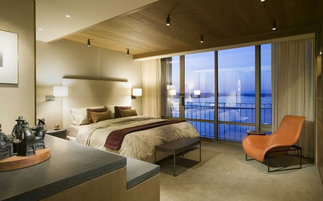 Соблюдение этих нюансов позволит зрительно увеличить пространство спальни, изменить стиль комнаты. С помощью нижнего освещения происходит организация камерного настроения интерьера. Однако включение верхних светильников нарушает созданный баланс и производит совершенно иное впечатление.