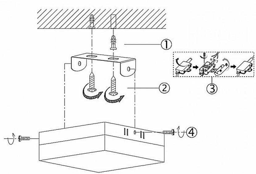 Схема монтажа накладного светильникаИсточник lampaekb.ru