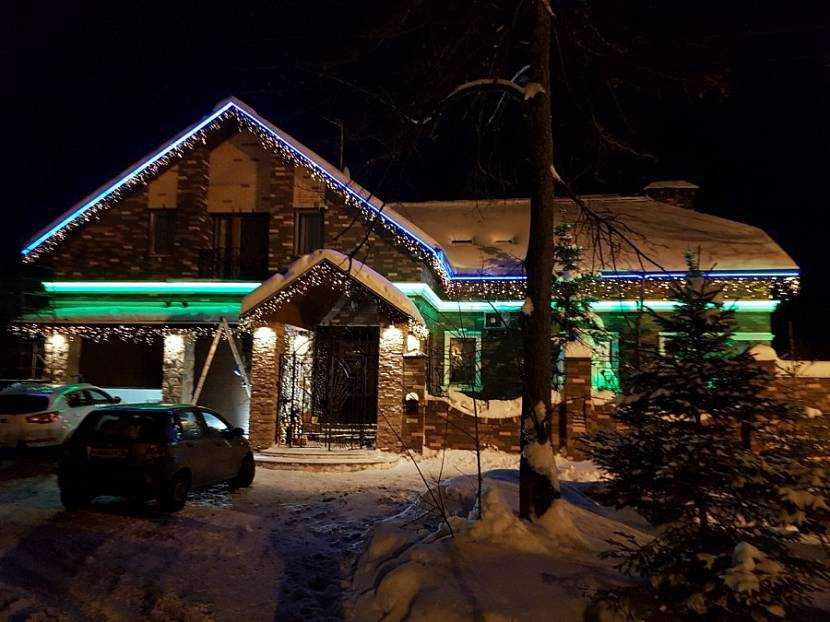 лассическая. Статическое (неподвижное) освещение выполняется в белом цвете, теплом или холодном. Несмотря на незамысловатое, в среднем, исполнение, такой вариант остается самым популярным. Фасад получается светлым, не перенапрягает глаза и смотрится выигрышно, особенно для построек в классическом стиле.