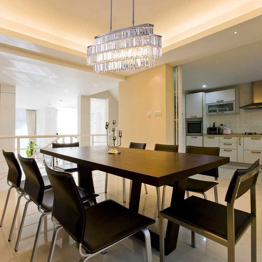 Самым популярным решением является использование подвесных люстр, расположенных над столом