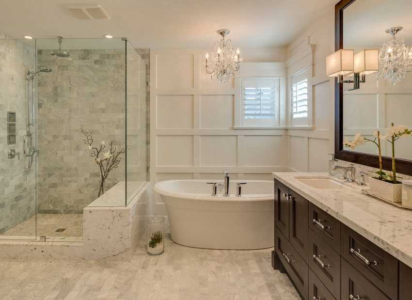Правильно подобранная люстра может украсить интерьер ванной комнаты. Хорошее освещение выгодно подчеркнет достоинства отделки, сделает прием водных процедур более комфортным.