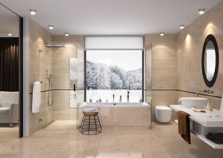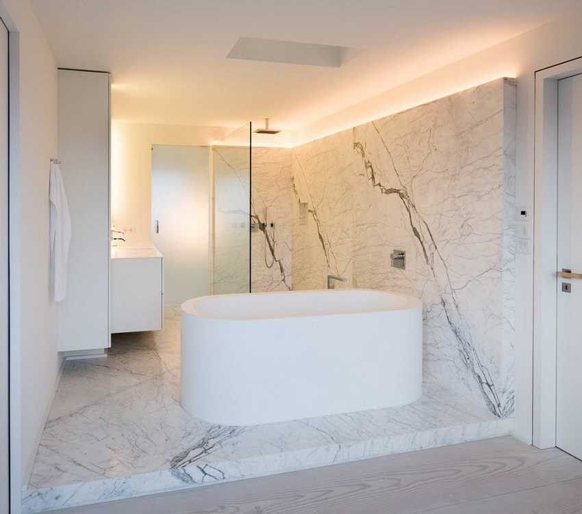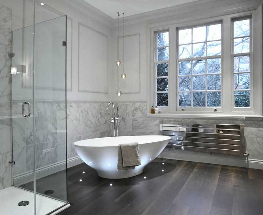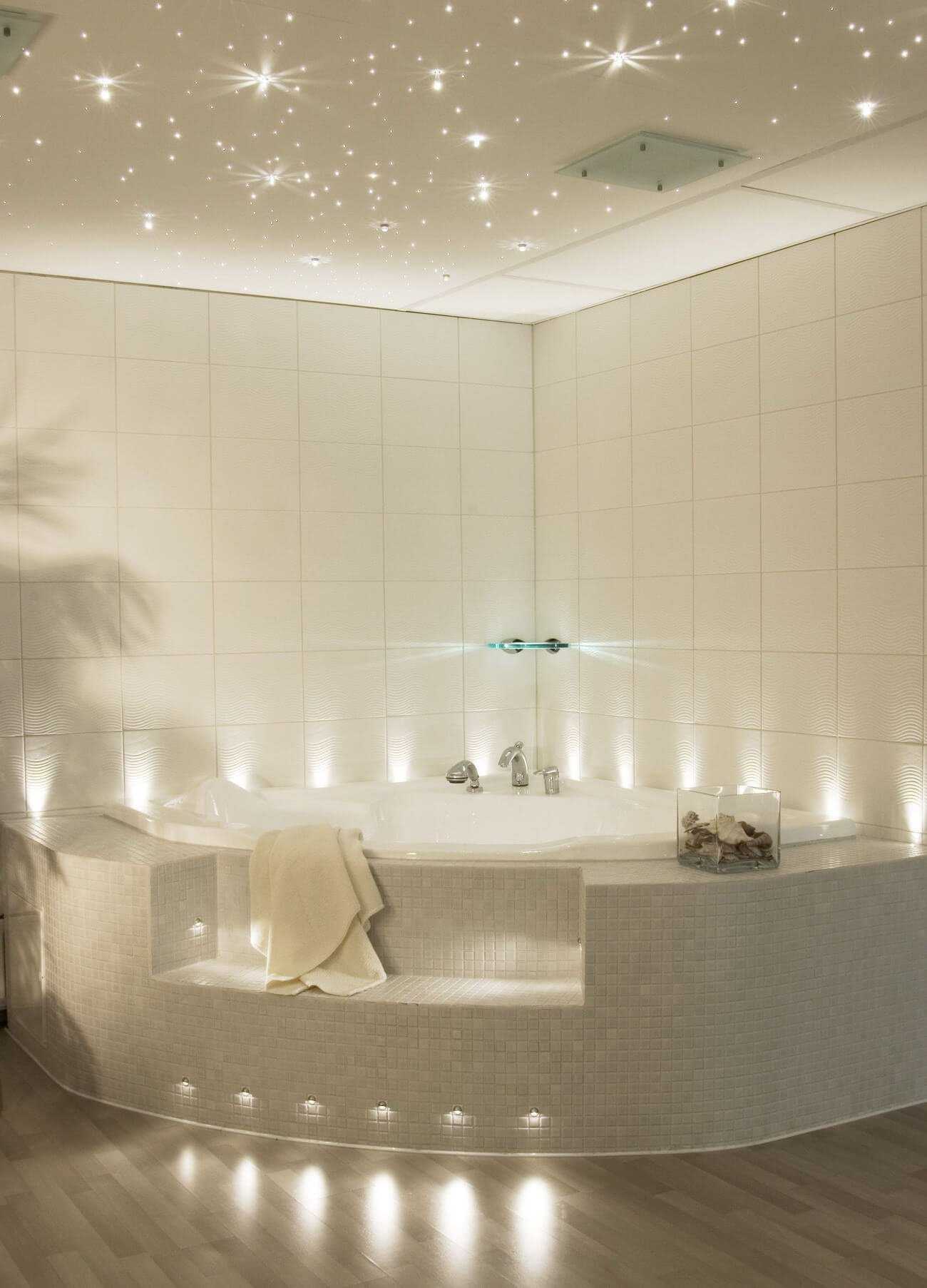 Еще один эксклюзивный момент – это напольное освещение, когда точечные светильники встраиваются вокруг ванны. При выключенном верхнем свете зрелище незабываемое!