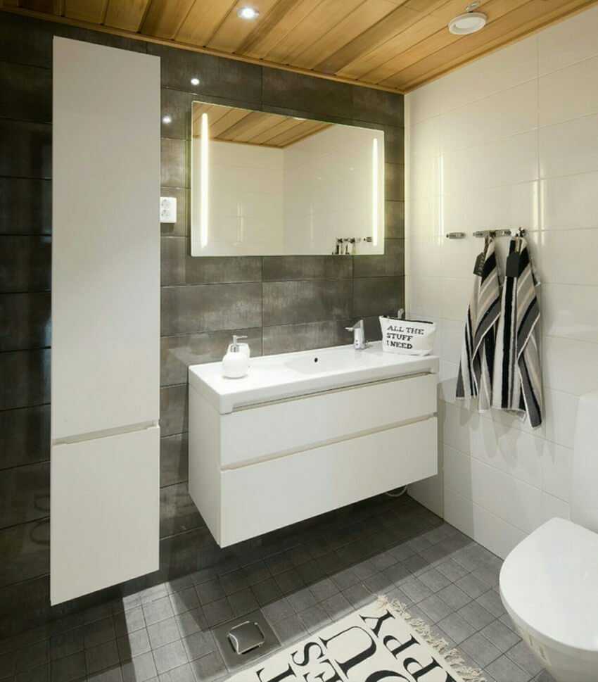 Каждое ваше утро начинается именно в этом помещении, поэтому оно должно вас радовать и эстетикой общего декора, и гармоничным освещением. Пускай с утра это будет яркий свет, а вечером, расслабляясь в ванне, вы можете оставить только настенный фонарь над зеркалом или пару точек под потолком.