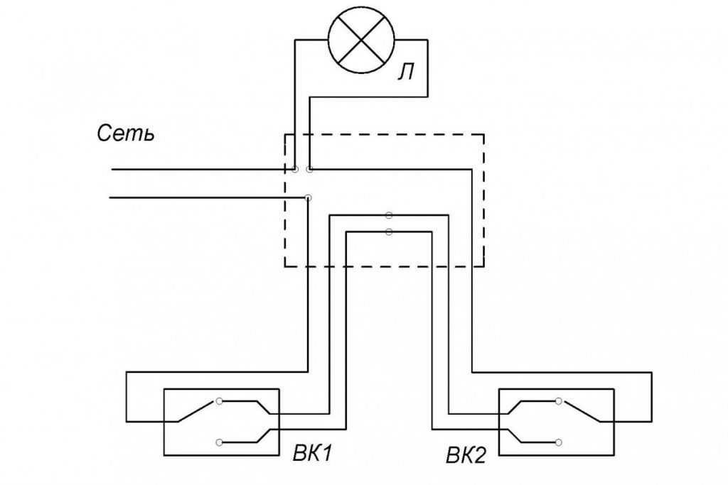 Схема подключения двух проходных выключателей