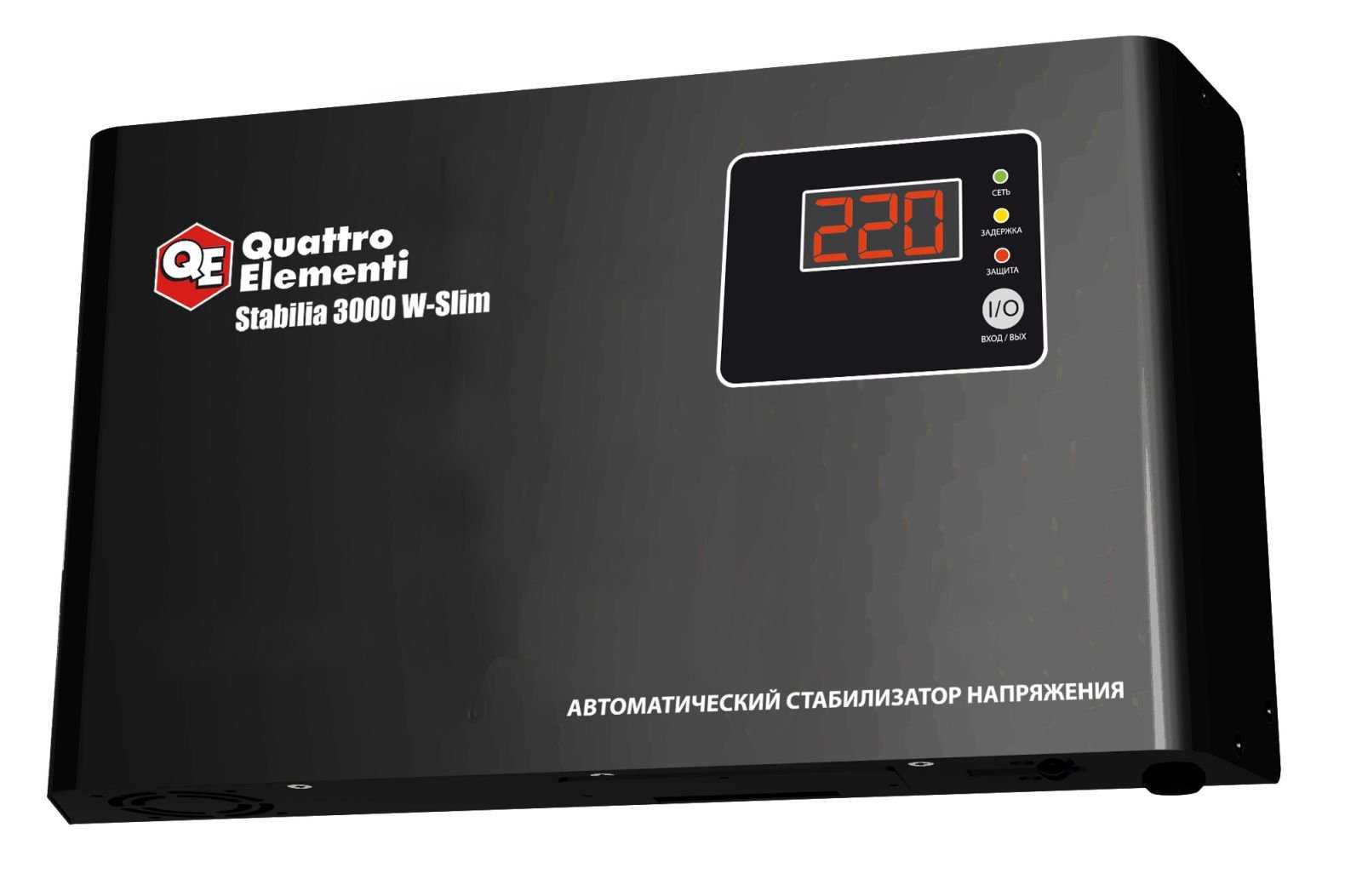 Небольшой настенный стабилизатор автоматически регулирует перепады вольтажа в сети. Его используют для защиты системы «Умный дом», систем водо- и теплоснабжения, а также бытового электрооборудования. Срабатывание устройства составляет менее чем секунду. Мощность прибора равна 3 кВА. Диапазон допустимых напряжений колеблется между 140 и 270 В. Небольшая (всего 60 мм) толщина корпуса позволяет размещать устройство на стене. Термостат защищает прибор от перегрева.