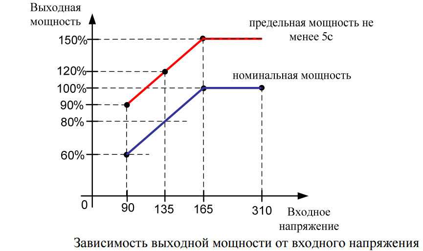 При увеличении нагрузки выше 50% от номинальной, для инвертора начинается снижение его входных параметров напряжения. То есть он уже не будет способен выровнять напряжение 110В, а будет нормально работать только от 160В и выше.