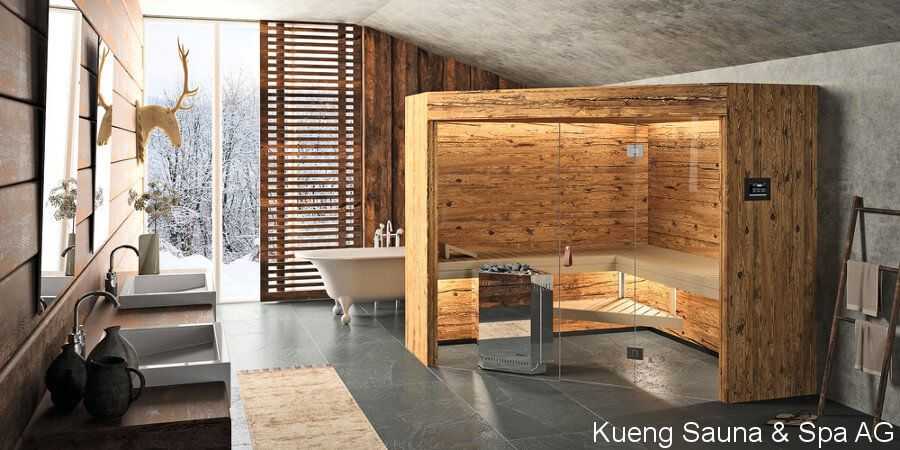 Теплое желтоватое освещение парной, отделанной натуральными материалами компании RoHol, и в компактной сауне от Kung Sauna больше других оттенков спектра способствует расслаблению