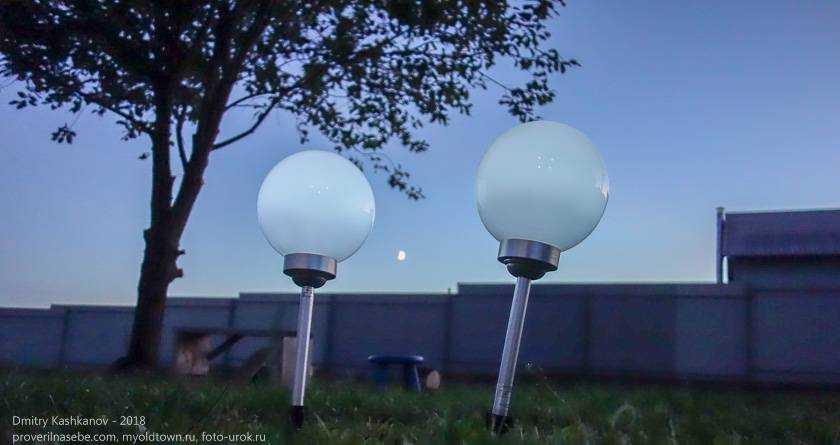 Мы не очень удивились тому, что они включились не одновременно. Датчики освещенности, которые имеются в каждом шарике, настроены по-своему. Поэтому разница во включении двух устройств составила примерно 8 минут.