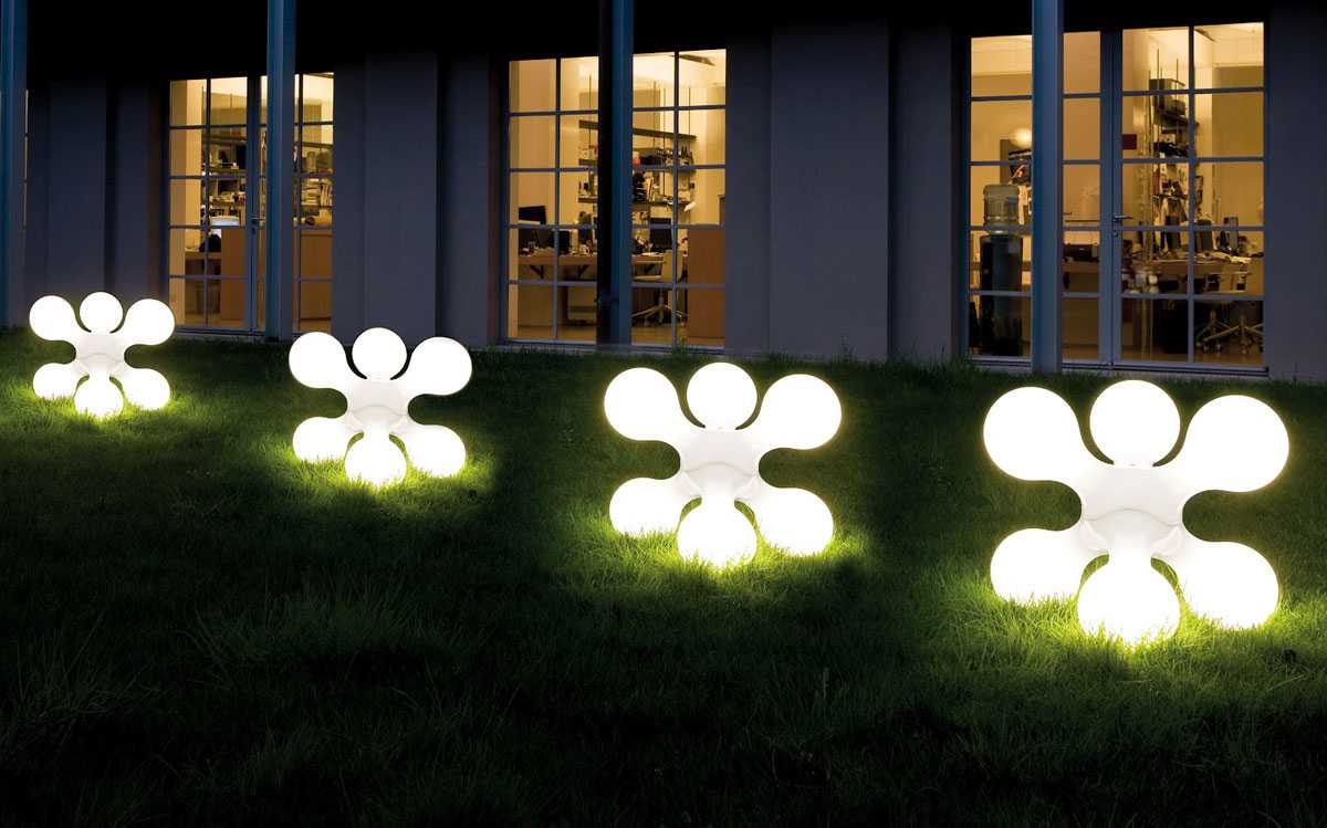 Днем светильники сливаются с растениями, а с наступлением темноты акцентируют внимание на цветочных композициях;