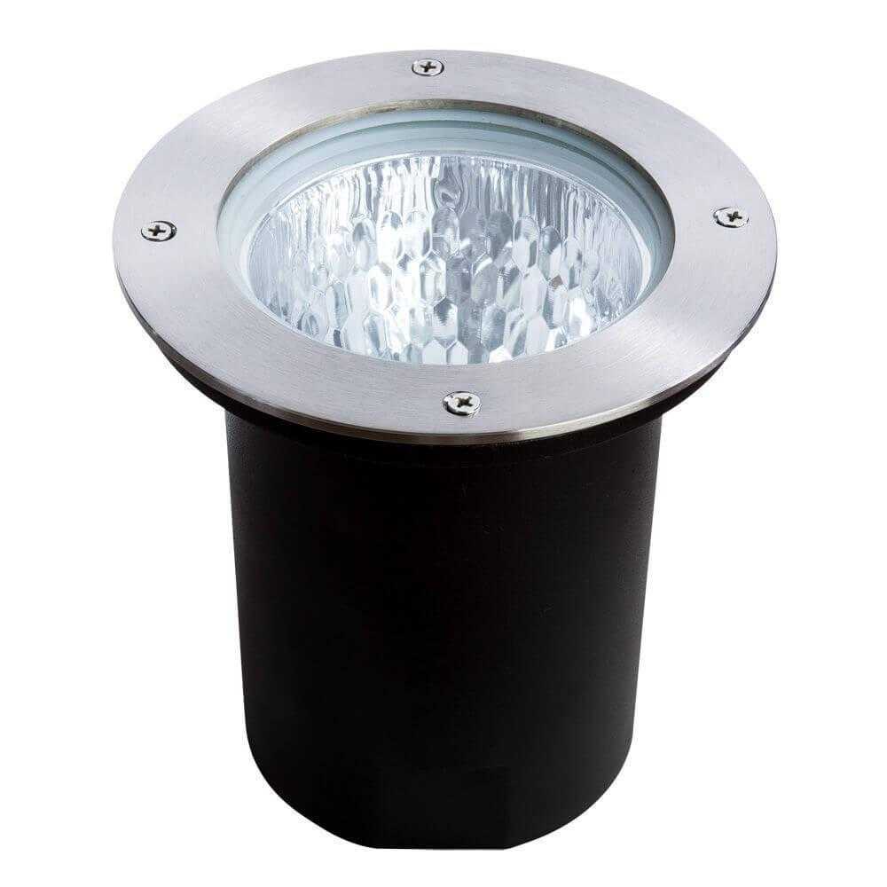 Доступная цена и стильный дизайн позволили грунтовому светильнику Novotech Solar 357201 завоевать золото в нашем обзоре. Модель работает от электроэнергии солнечных батарей, что позволяет быстро и легко организовать освещение дворовой территории или туристического лагеря. Венгерский производитель применил качественные материалы, а также хорошую пыле- и влагозащиту (IP65), благодаря чему светильник долго служит потребителям. Экспертам понравился хромированный корпус, плафон из пластика и небольшое потребление электроэнергии (0,06 Вт). В качестве источника света рекомендуется применяться светодиодные лампы с цветовой температурой 4000 К.