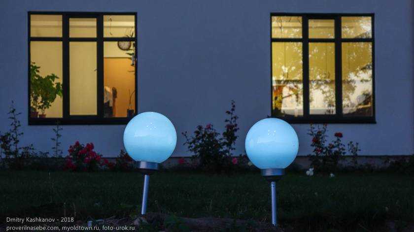 Если заслонить шар рукой, то можно увидеть, что он все же освещает часть территории сада. Но площадь освещенного участка настолько невелика, что использовать эти светильники, например, для освещения садовых дорожек мы бы не стали.