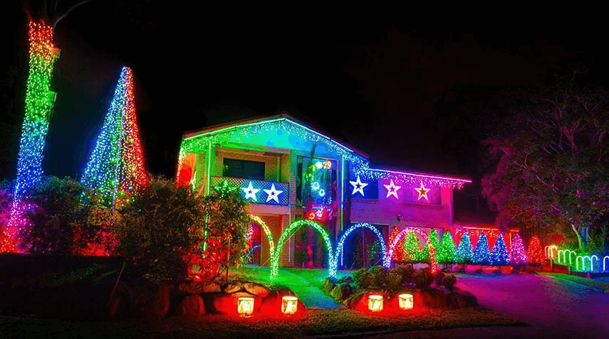 Гирлянды хорошо подходят для наружного украшения дома, придомовой территории.