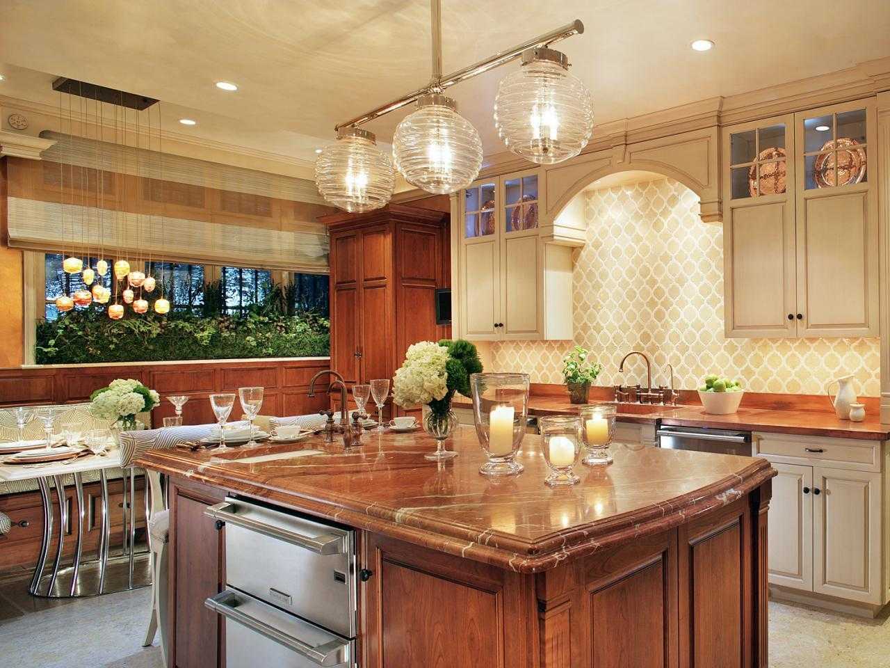Базовое освещение в кухне не должно быть чересчур ярким, так как в первую очередь нужна подсветка рабочих поверхностей. Это стол, на котором готовят пищу, плита или варочная поверхность. В качестве дополнительного освещения плиты применяют вытяжки с встроенной подсветкой. В обеденной зоне уместен более мягкий и теплый свет.