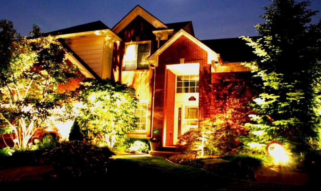 - Освещение дома или коттеджа. Если светильники используются в качестве защиты, то стоит остановить свой выбор на акцентных приборах. Происходит генерация узких участков свечения, чтобы создать стойкий эффект цвета. Они применяются в качестве монохромных или полихромных светодиодов.