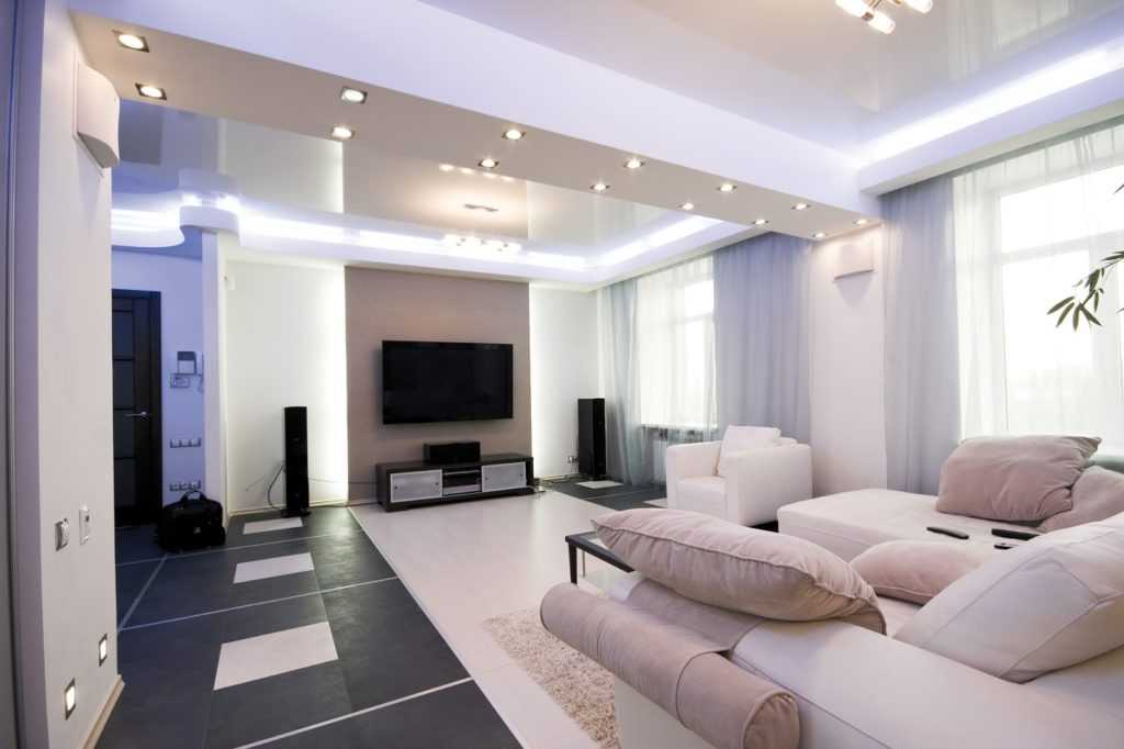 точечных светильников, светодиодную ленту надо крепить на самоклеящуюся основу.