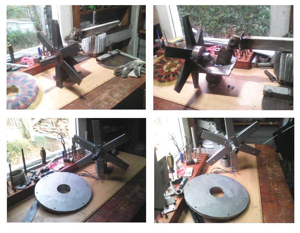 Фото-отчёт о изготовлении ветрогенератора своими руками. Этот ветрогенератор я сделал осенью 2016-го года. Начну с описания и фотографий генератора. Генератор дисковый аксиальный, он не имеет залипания, по-этому винт стартует при ветре 2 м/с. Диски сделаны из железа толщиной 8 мм, сначало были вырезаны заготовки из металла болгаркой, и потом обработаны на токарном станке. Диаметр дисков 220 мм.