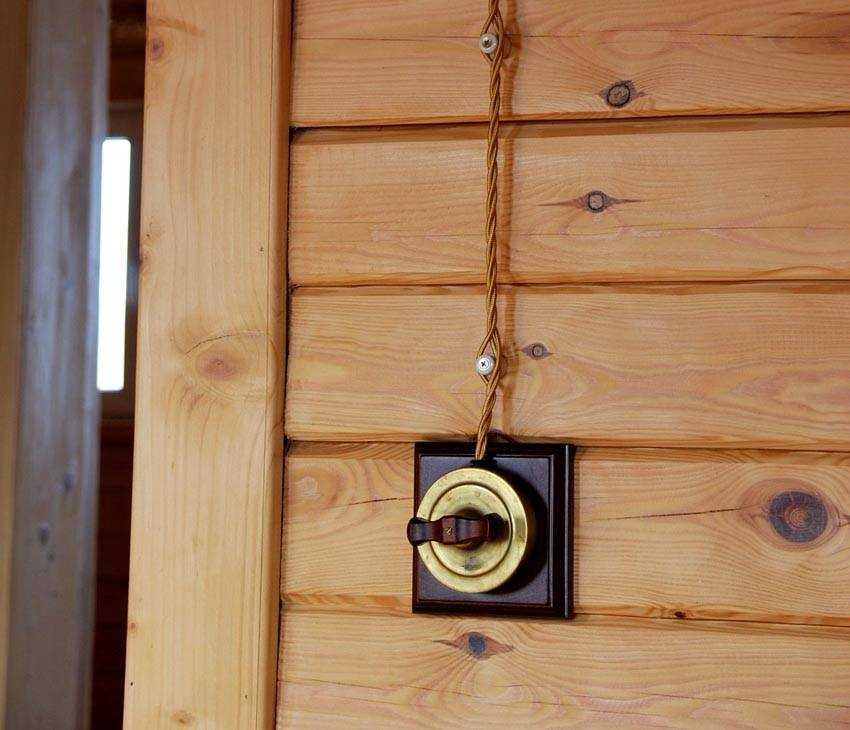 Если общий дизайн интерьера квартиры выполнен в деревенском стиле, то современная элетропроводка будет резко бросаться в глаза, и нарушит всю композицию стиля. Поэтому, в таком случае, предпочтение отдают открытому типу проводки. Суть ее заключается в том, что электрический кабель не скрывают в стене, а располагают на ее поверхности.