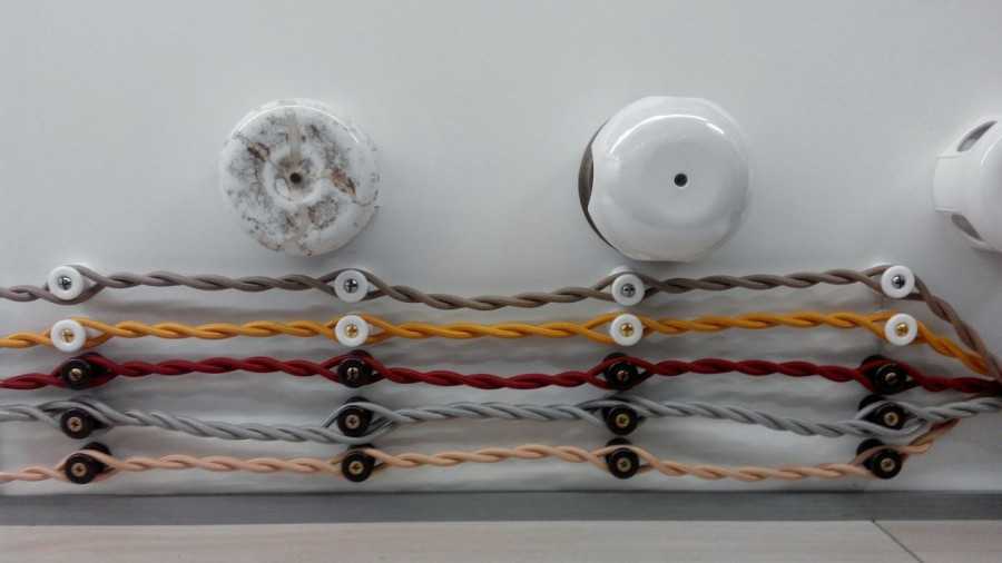 Обычно, для проводки открытого типа, выбирают одножильные провода из меди. Эти провода скручиваются и прикрепляются к роликам, через небольшой одинаковый промежуток, при помощи тоненькой проволоки.