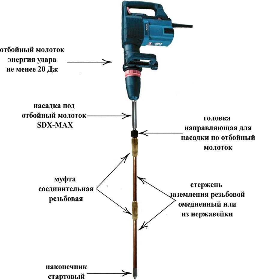 Далее для работы понадобится подходящий инструмент. Необходим комплект гаечных ключей, портативный сварочный аппарат, шлифовочная машинка, тяжелая кувалда, штыковая лопата, комплект отверток. Используя инструмент нужно сделать заземляющую конструкцию. Можно остановиться на варианте с формой треугольника.