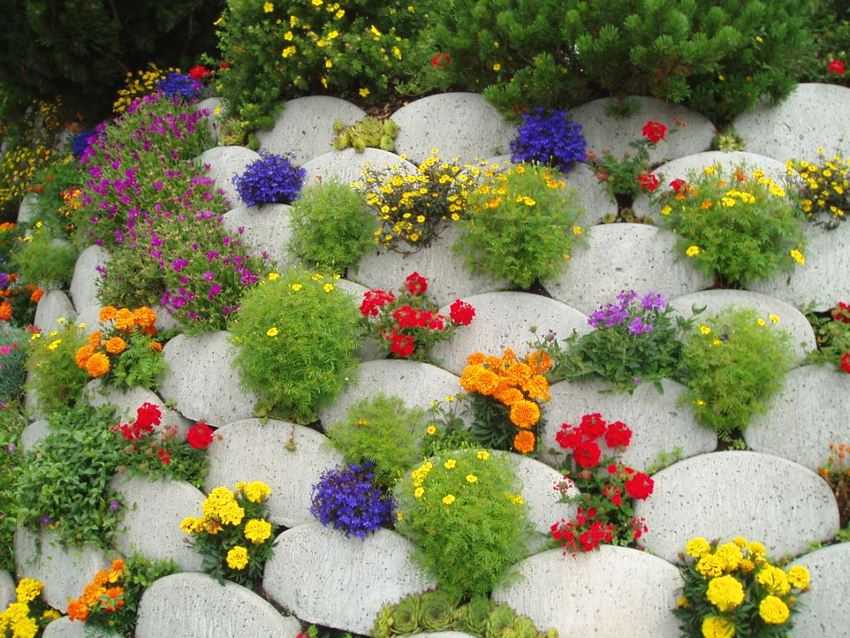 Альпийская каменная горка с яркими цветами