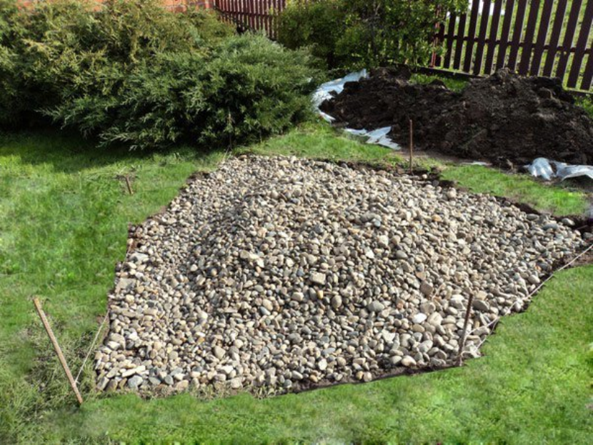 - для защиты от избыточной влаги и газообмена формируют подушку 10-20 см щебня, битого кирпича;