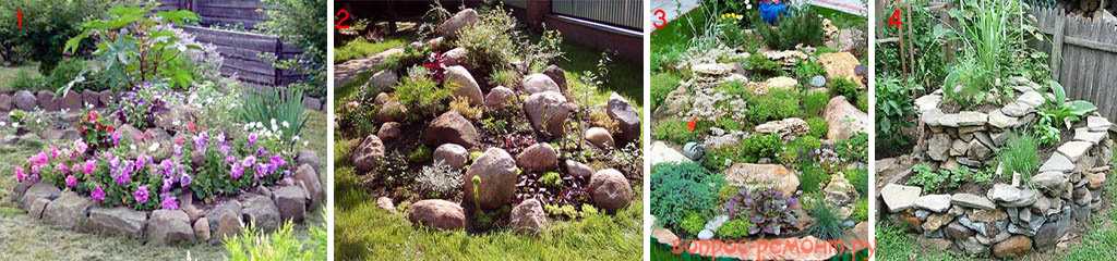 Мелкие камни может подмывать во время сильных ливней, так что укреплять их стоит либо повыше от предполагаемых потоков воды, либо особо прочно. Между валунами стоит также оставлять места для посадки цветов.