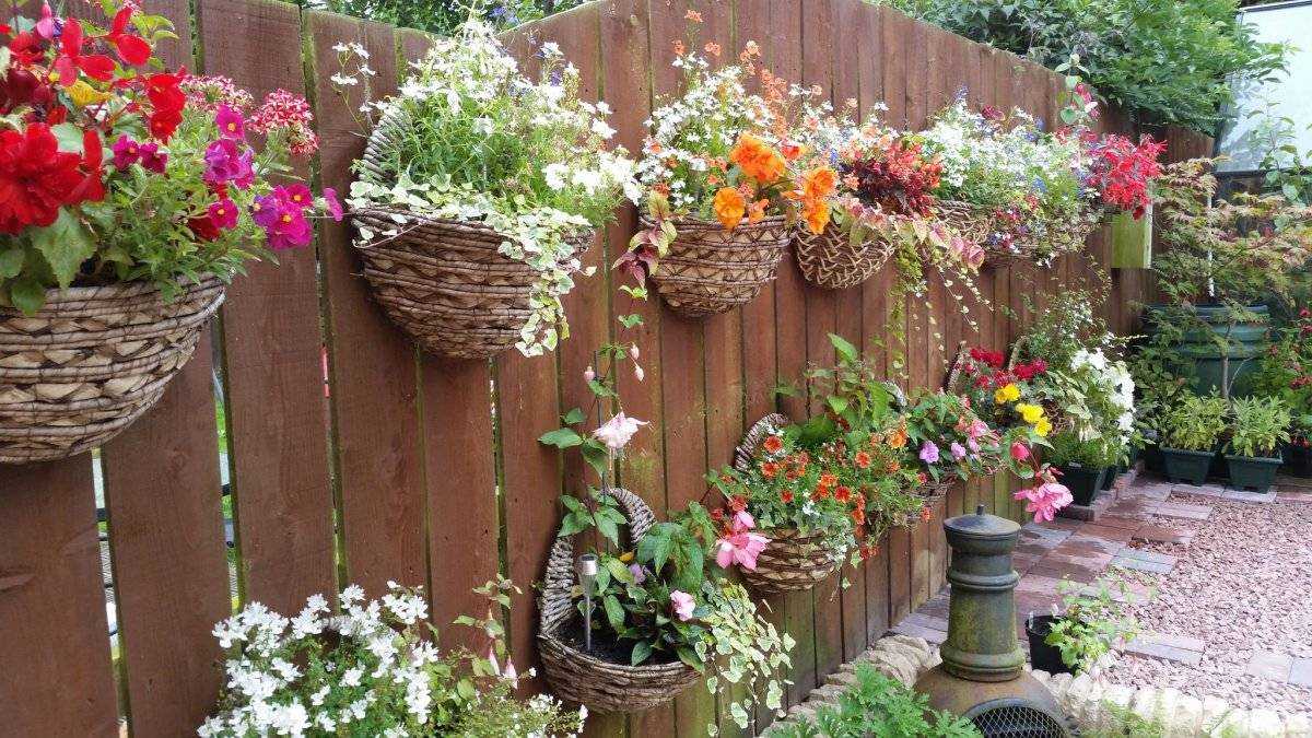 Висячие сады — оригинальное украшение дачного участка. Ухаживать за ними нужно также, как и за обычной клумбой, в зависимости от потребностей растений. Висячим садом называется цветочный ансамбль, состоящий из 5 и более растений разных видов, растущих в подвесных ящиках. Для создания висячего сада понадобится много решёток и балок, расположенных на разной высоте. Все цветы в композиции должны получать одинаковое количество света, влаги и удобрений. Не стоит сажать рядом друг с другом светолюбивые и теневыносливые цветы, а также однолетние с многолетними.