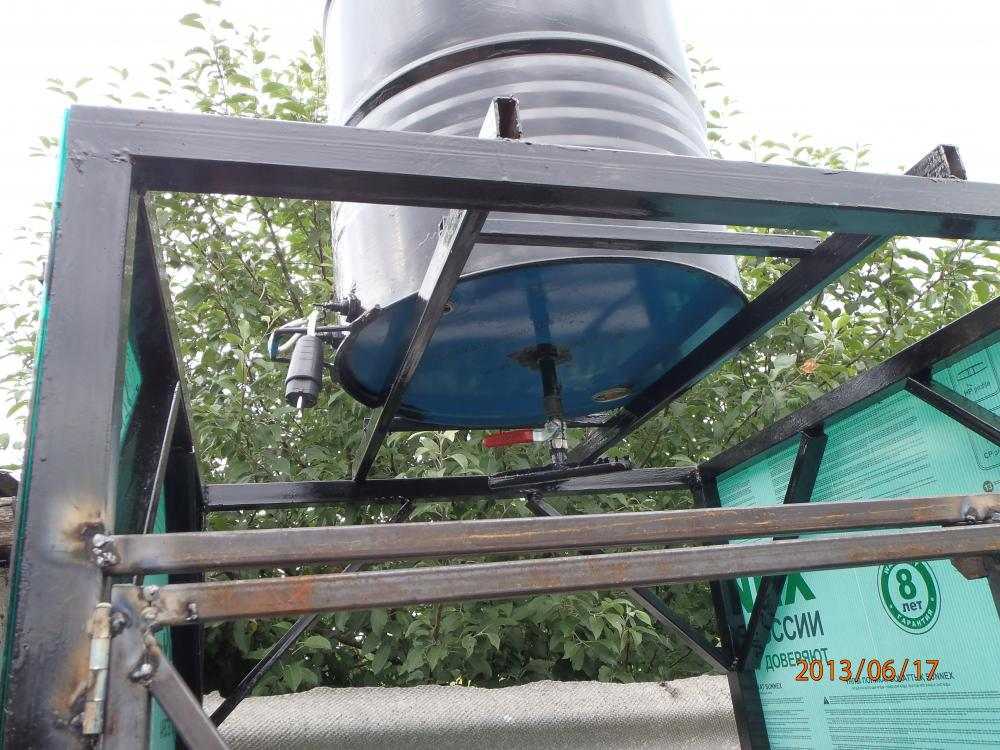Сезон отдыха за городом – это лето, но как обойтись в жару без возможности принять душ, особенно после работы в саду, на огороде или в мастерской? Ответом на этот вопрос стала простая конструкция: установленный на высоте 2-х – 3-х метров резервуар с водой, имеющий излив с душевой лейкой.