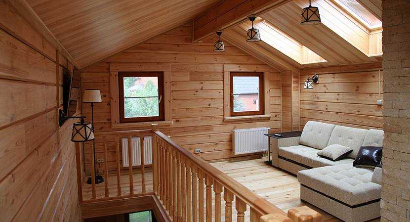 Для отделки мансарды мы использовали вагонку, которую крепили к специальной обрешетке. После монтажа всю вагонку покрыли антисептическими растворами.