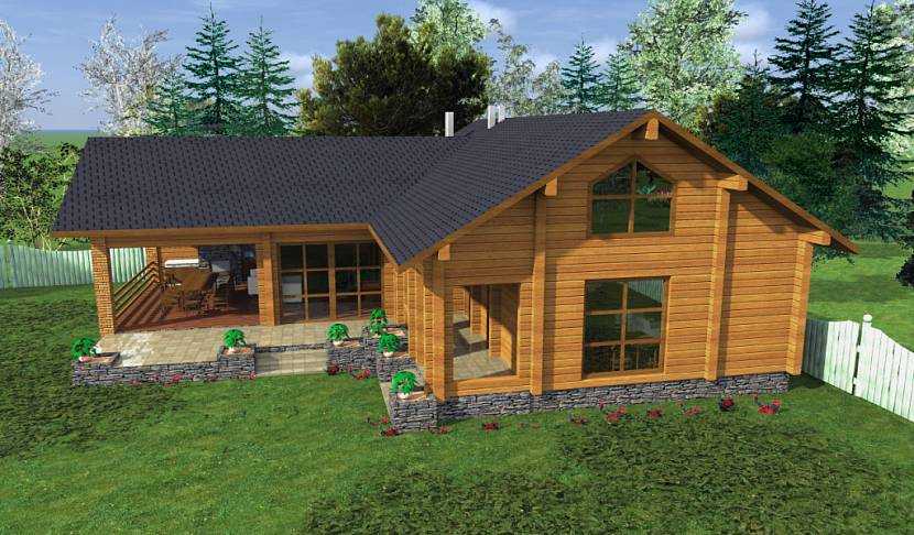 Гостевой дом с баней под одной крышей и верандойИсточник banyabest.ru