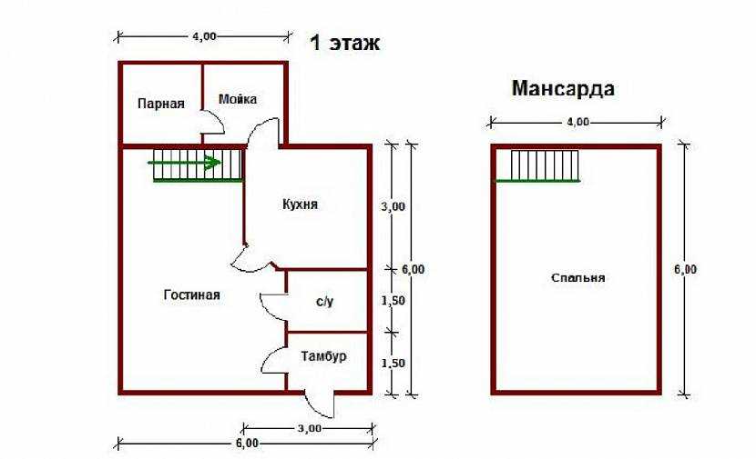 Дом с баней 6 на 5 – планировка первого этажаИсточник makemone.ru
