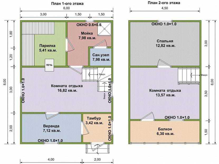 Типовые проекты бань с мансардой 6 на 4 м обычно включают стандартный набор помещений: