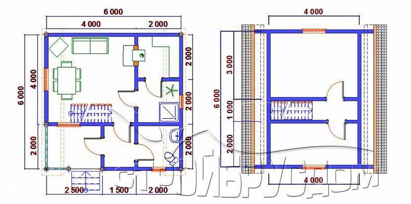 Баня 6 на 6 с мансардойИсточник skedraft.ru