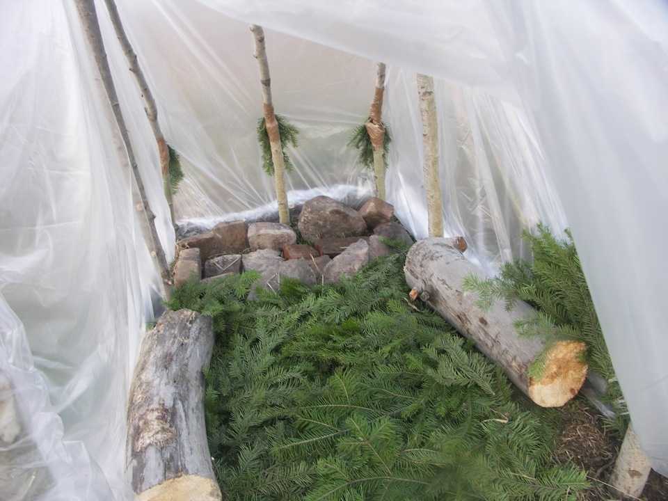 Итак, из припасенных заранее булыжников нужно выложить печь, по форме напоминающую миниатюрный колодец. Затем полностью обложить его дровами и поджечь.