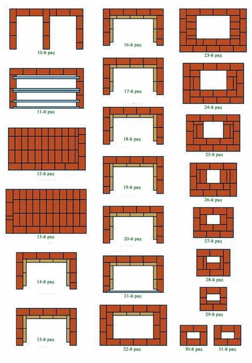 Кирпичи: обычные полнотелые, так как на эту часть конструкции не воздействуют высокие температуры.