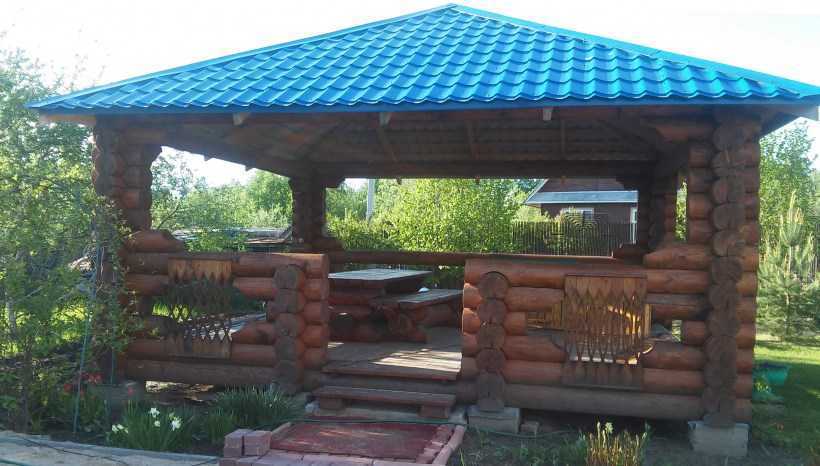 Беседка из брёвен своими руками: фото, видео, варианты строительства, чертежи с размерами