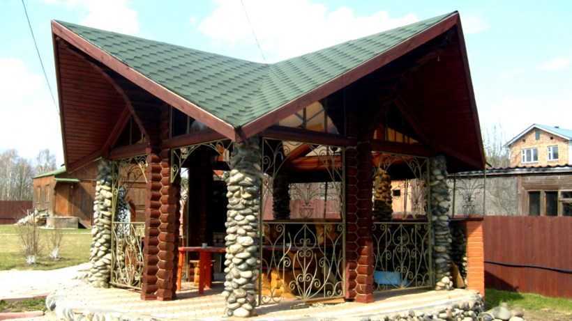 Но, есть беседки сложных конструкций. Это массивные сооружения, застекленные, с печкой и мангалом внутри. В них комфортно отдыхать и летом и зимой.