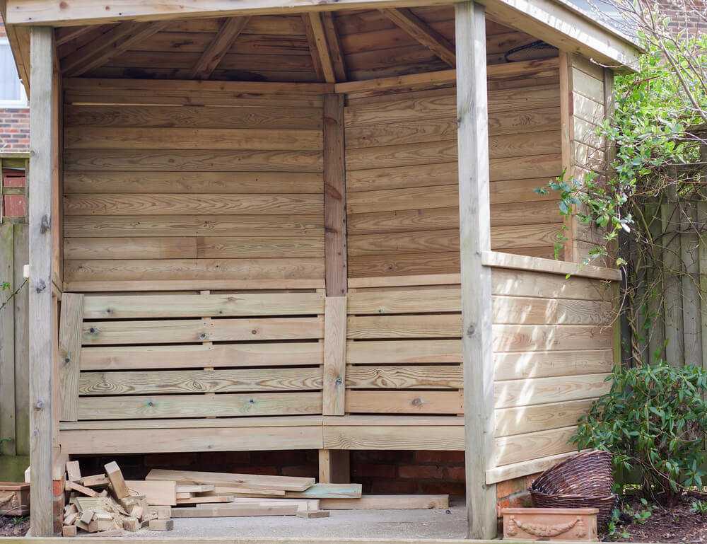 Тут могут потребоваться строительные и столярные навыки. Но при этом внешний вид у такой беседки можно считать наиболее привлекательным;Беседка-навес — самый простой тип беседки из дерева, который можно сделать на даче своими руками. При его строительстве вы потратите минимум усилий и финансов.