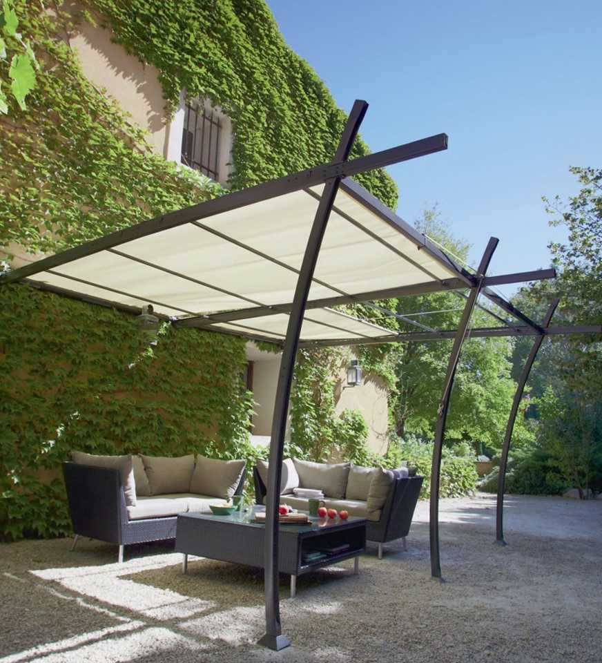 Достаточно установить несколько опор и смонтировать сверху навес и можно пользоваться. Такие конструкции часто устанавливают на небольших дачных участках. Их основная функция переждать мелкий дождь или немного отдохнуть после ухода за дачными растениями.