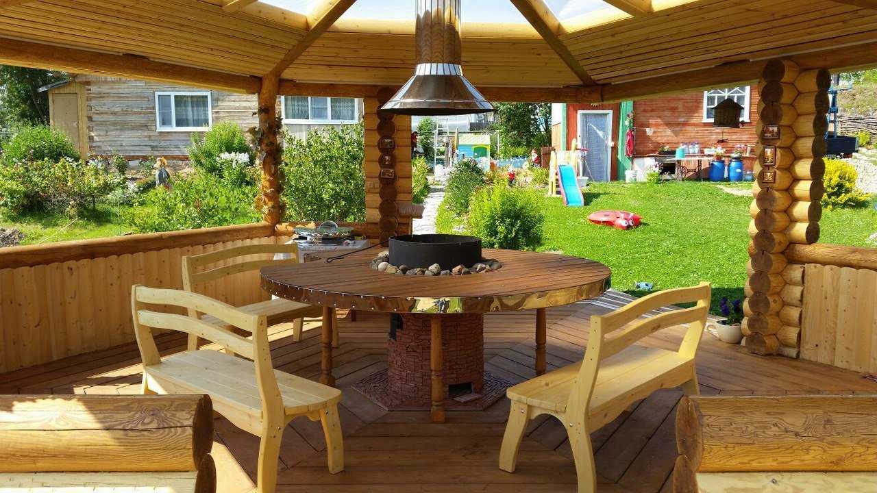 Беседка может иметь всё для полноценного отдыха, вплоть до разделочной поверхности