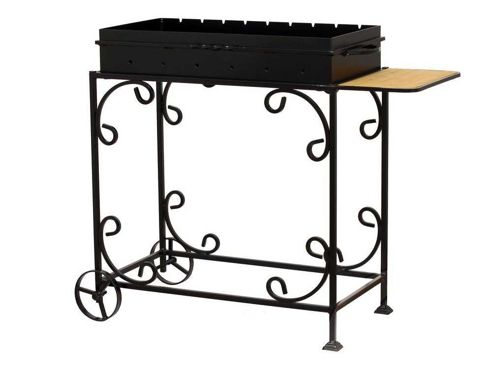 Имеет большие габариты, но позволяет готовить блюда на специально оборудованных, нагревающихся от огня плитах или на самих углях.