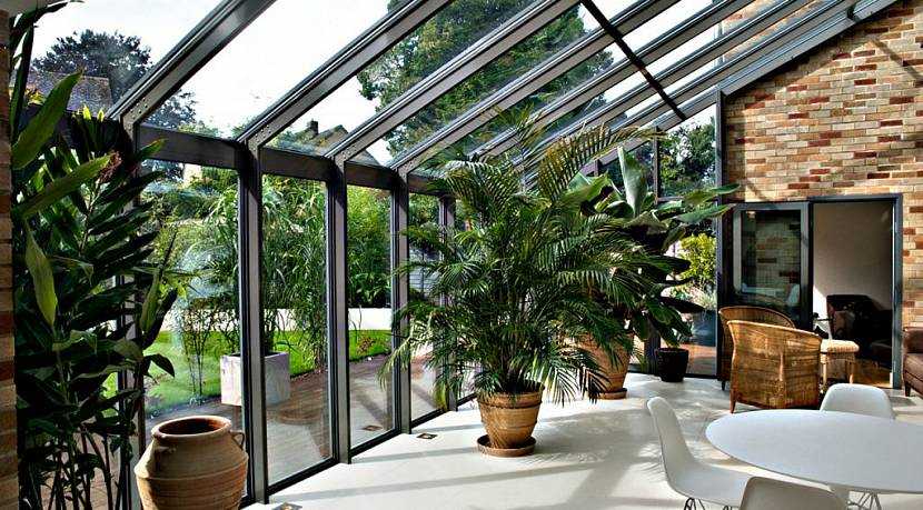 Зимний сад, спрятанный за стеклами или поликарбонатом,
