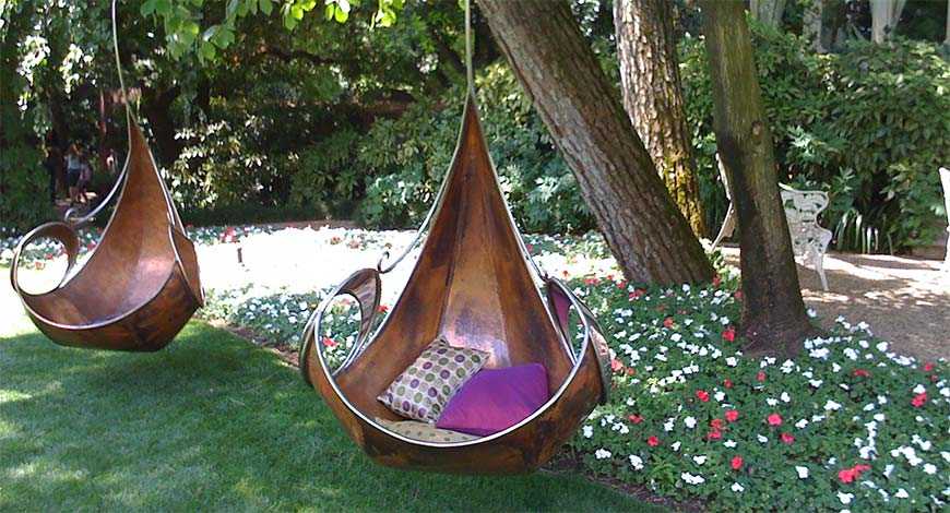Качели или гамак позволят взрослым расслабиться и даже вздремнуть, эта дачная идея просто обязательна для каждого участка в летнее время года. Для них лучше сделать более широкие качели, чем у детей. Гамак можно подвесить к деревьям.