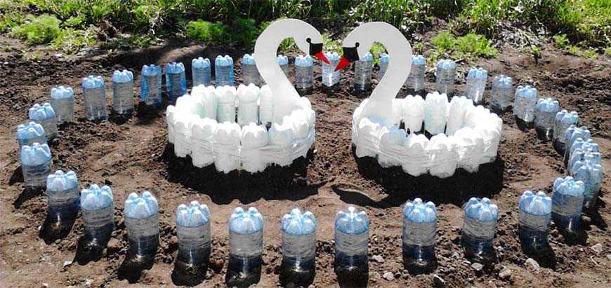 Пластик – материал недорогой и легкодоступный. Опытные садоводы с творческой фантазией знают массу вариантов его применения. Такие качества, как гибкость, прочность, долговечность пластика позволяют создавать самые разные скульптуры, украшения для цветников, бордюры и другие интересные композиции из пластиковых бутылок.
