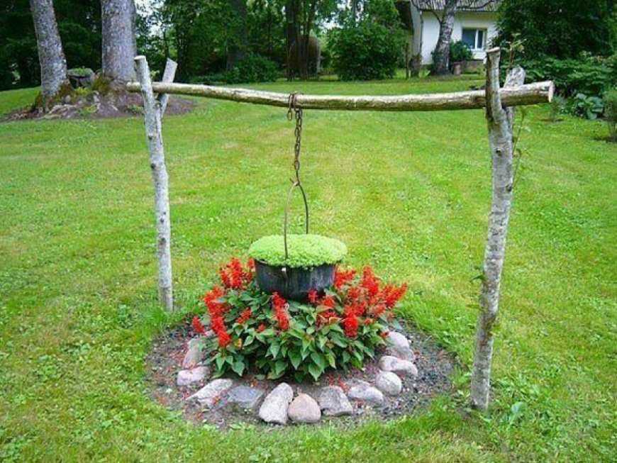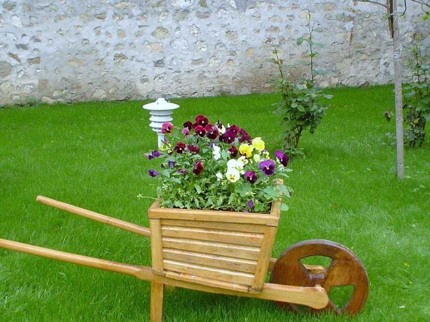 8. Основой для клумбы может послужить ненужная мебель, старая кухонная утварь, отслужившие свое музыкальные инструменты, тележки — словом, практически что угодно.