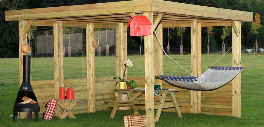 Место для отдыха под открытым небом – обязательное условие комфортного времяпрепровождения на даче или в садовом участке. Здесь все будет зависеть от желаний и предпочтений хозяев. Вариантов может масса: беседки с удобной мебелью, широкие качели (отличная идея – поставить навесную конструкция в тени под деревьями), гамаки или же просто площадка с комфортными стульями и столом.