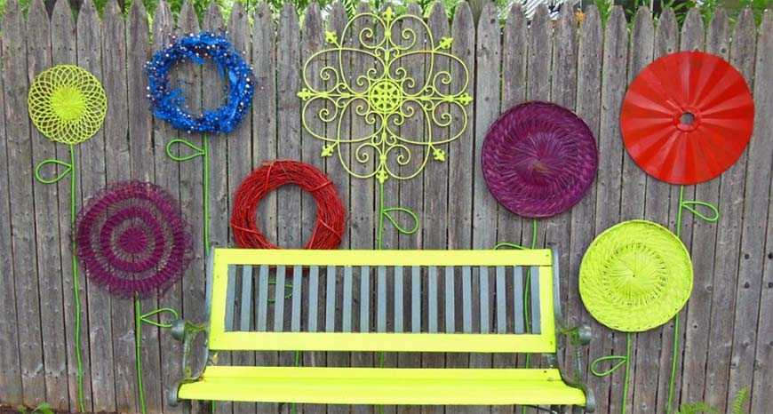 Наилучшим аспектом уникальности садового участка является его ограждение. Помимо защитной функции, забор – это привлекающая взор визитная карточка владельцев. Простой железный или деревянный вариант – это банально. Декорировать забор можно по-разному. Несколько ярких примеров показаны на фото.