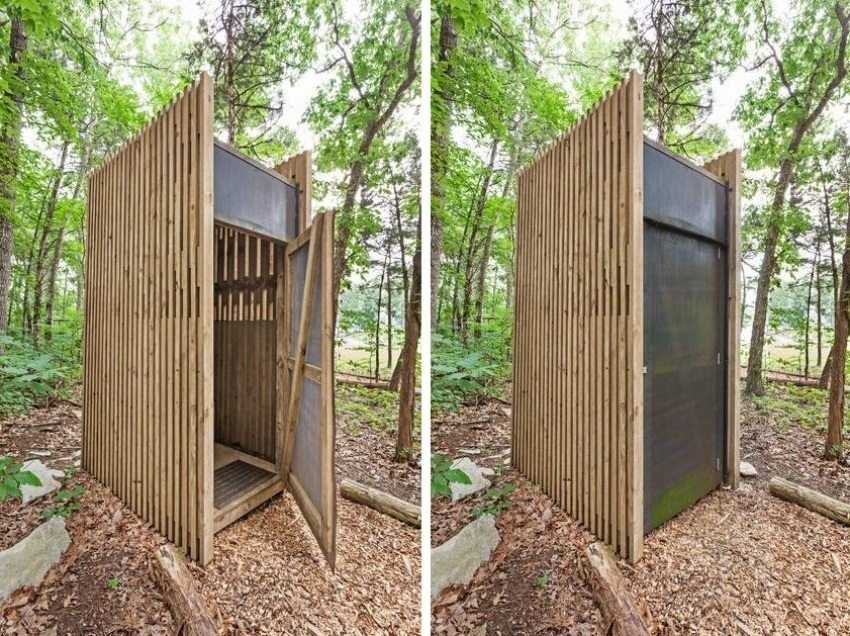 Этот туалет имеет вид ромба. По сравнению с «Шалашом» строится он дольше, но и вид имеет более декоративный. При соответствующем оформлении он ничуть не испортит пейзаж.