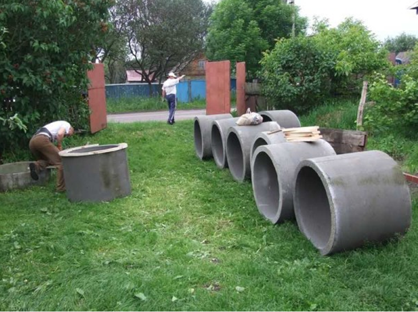 данном случае, использовались готовые бетонные кольца, которые завезли на