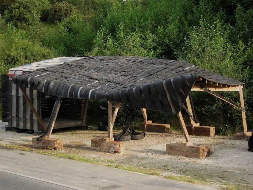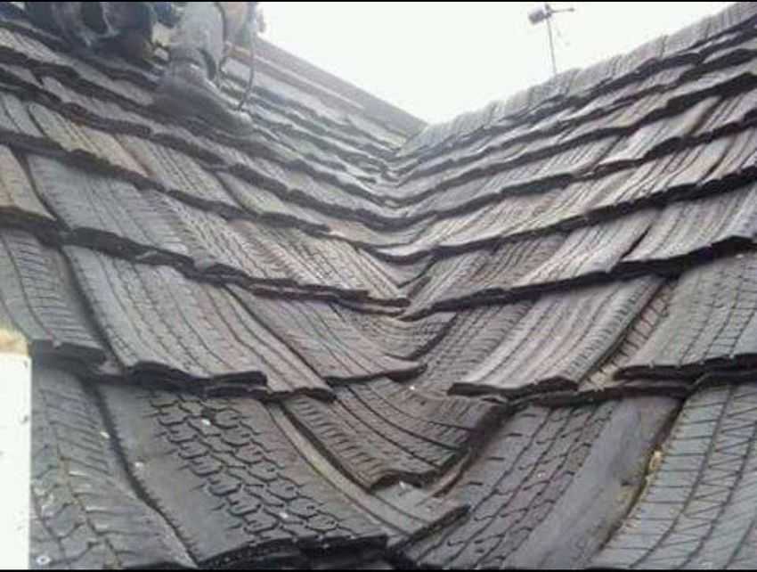Кровля, изготовленная собственноручно из обработанных шин – долговечное решение.